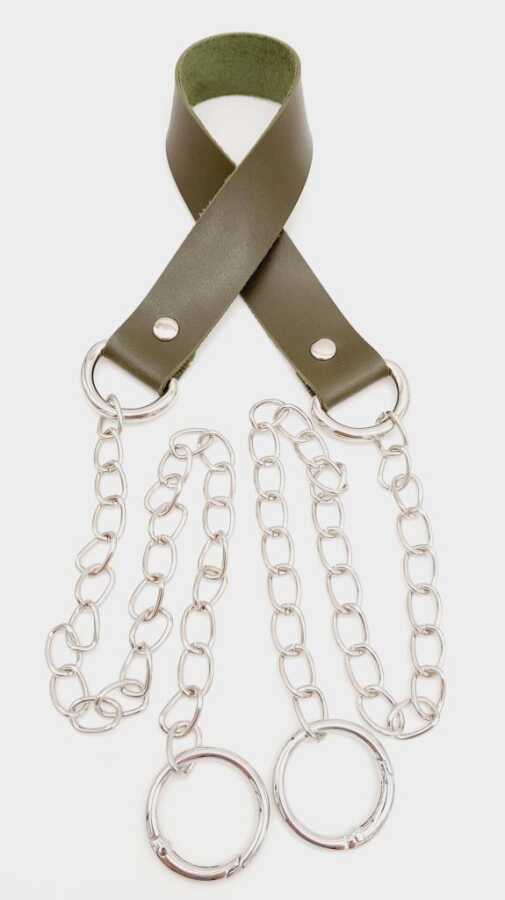 Angel Çanta Aksesuar Tek Kat Suni Deri Haki Renk İnce Zincirli Sap Gümüş Metal