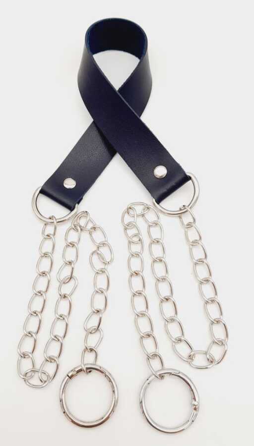 Deri Kısım Uzunluk: 38 cm Deri Genişlik: 2,5 cm Halkalar Hariç Toplam Uzunluk: 100 cm Zincir: Gümüş Renk Tek Kat Suni Deriden üretilmiştir.