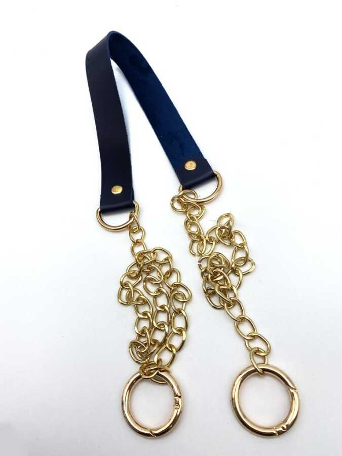 Angel Çanta Aksesuar Tek Kat Suni Deri Lacivert Renk İnce Zincirli Sap Light Gold Metal