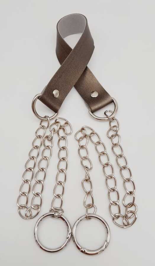 Deri Kısım Uzunluk: 38 cm Deri Genişlik: 2,5 cm Halkalar Hariç Toplam Uzunluk: 100 cm Zincir: Gümüş Renk Tek Kat Suni Deriden üretilmiştir.