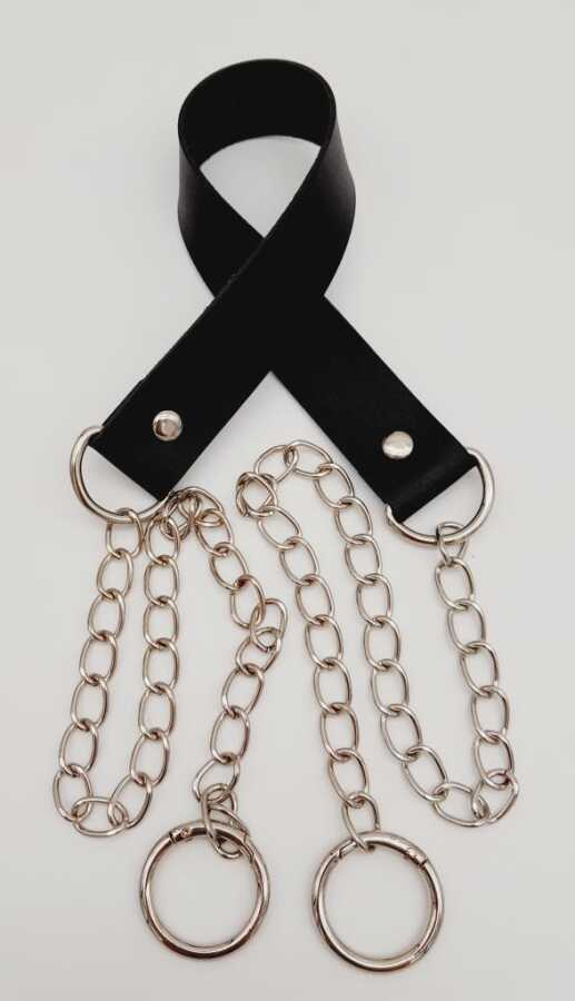 Deri Kısım Uzunluk: 38 cm Deri Genişlik: 2,5 cm Halkalar Hariç Toplam Uzunluk: 100 cm Zincir: Gümüş Renk Tek Kat Suni Deriden üretilmiştir.