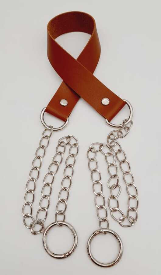 Deri Kısım Uzunluk: 38 cm Deri Genişlik: 2,5 cm Halkalar Hariç Toplam Uzunluk: 100 cm Zincir: Gümüş Renk Tek Kat Suni Deriden üretilmiştir.