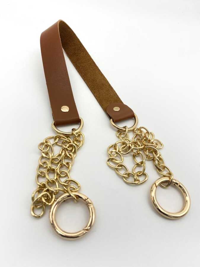 Angel Çanta Aksesuar Tek Kat Suni Deri Taba Renk İnce Zincirli Sap Light Gold Metal