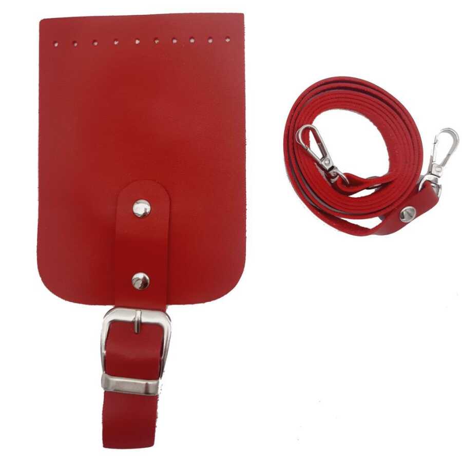 Angel Çanta Aksesuar Tokalı Kapak Aparatlı Suni Deri Çanta Seti Kırmızı
