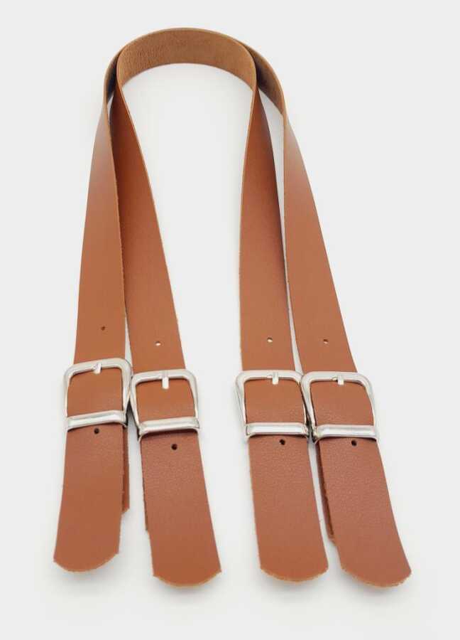 Angel Çanta Aksesuar Tokalı Model Suni Deri Taba Renk Çift Çanta Sapı Gümüş Metal