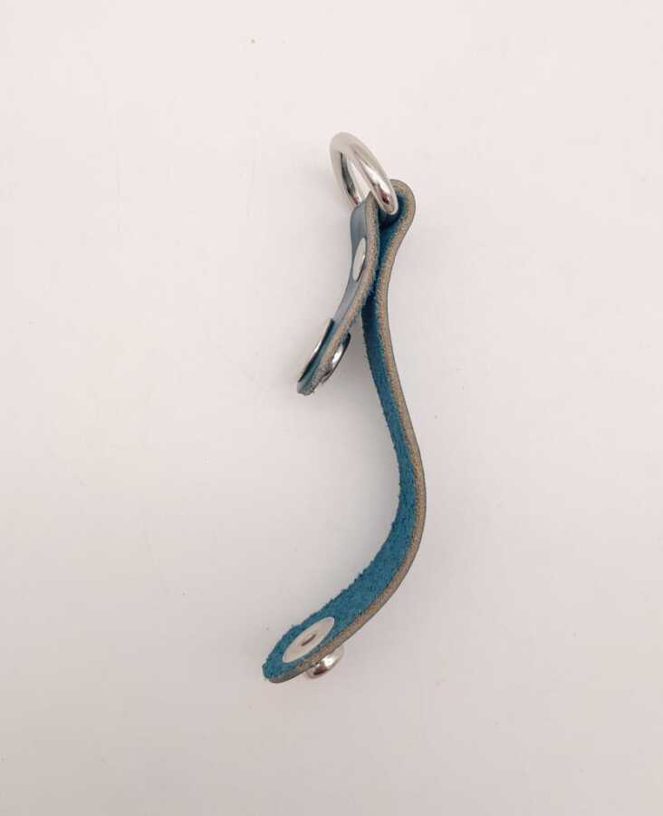 Genişlik: 2 cm Uzunluk: 8 cm Metal Renk : Gümüş Gerçek deriden üretilmiştir. Tek olarak satılır. Örgü çantaların saplarının çantaya tutturulmasında kullanılır.