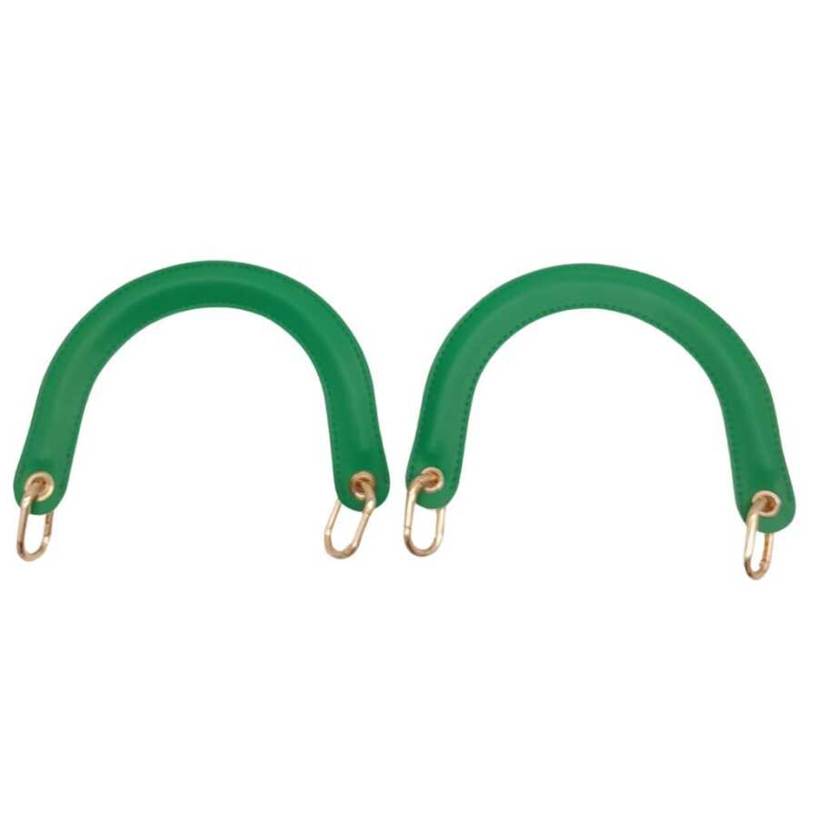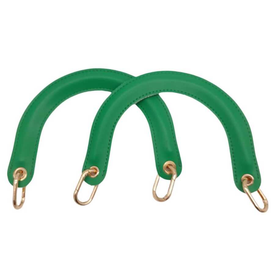 Angel Çanta Aksesuar Yaylı Halkalı Kapsüllü Suni Deri Yeşil Renk Tutma Sapı Light Gold Metalli