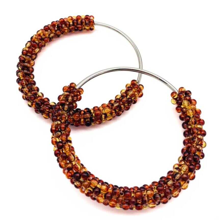 Angel Çanta Aksesuar Yuvarlak Kehribar Boncuklu Gümüş Renk Metal Çanta Sapı