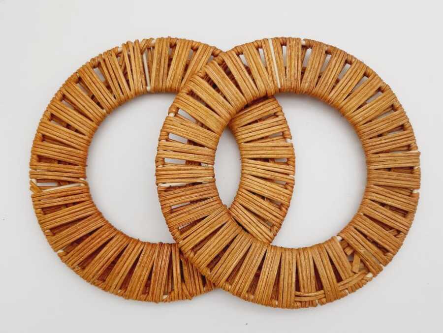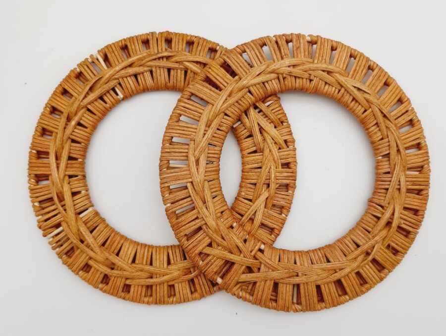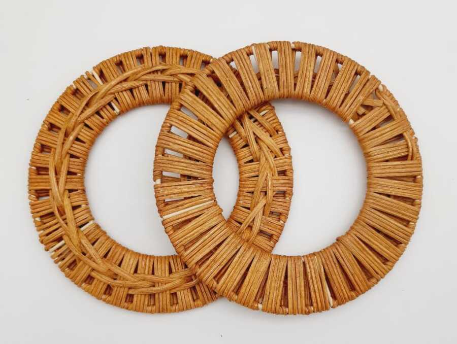 Yuvarlak Örgülü Gerçek Bambu Çanta Sapı Dış ölçüsü 15cm. İç ölçüsü: 9cm Çift Olarak Satılmaktadır